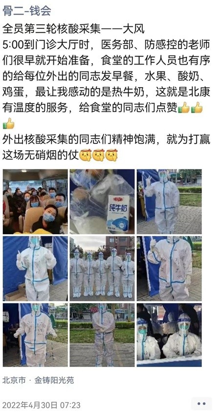 4月30日是五一小長假第一天,晚7點(diǎn),宣武醫(yī)院神經(jīng)內(nèi)科電生理專業(yè)組工作群的消息突然響了,組長黃朝陽發(fā)布了一條信息:“5月1日和3日各需5人支援西城核酸采樣任務(wù),請大家積極響應(yīng),積極報(bào)名!”看到醫(yī)院緊急通知,同事們用無聲、快速地接龍做出了回應(yīng),名額很快報(bào)滿,很多沒報(bào)上的同事還主動要求成為候補(bǔ)。