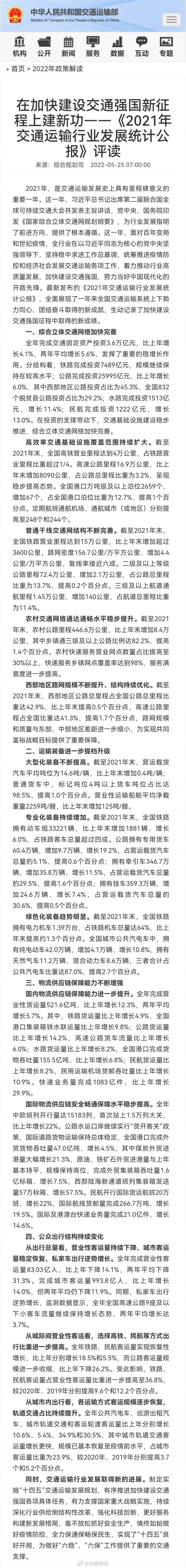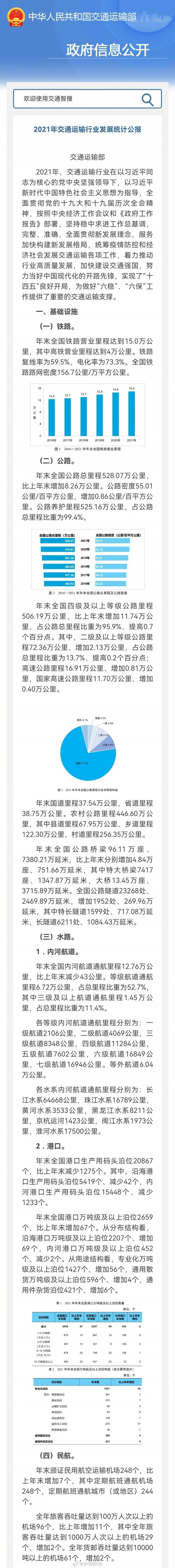 - 《2021年交通運輸行業(yè)發(fā)展統(tǒng)計公報》發(fā)布 我國綜合立體交通網(wǎng)絡(luò)加快完善