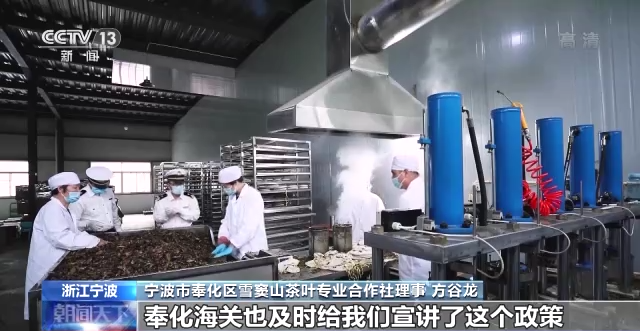 寧波市奉化區(qū)雪竇山茶葉專業(yè)合作社理事 方谷龍:RCEP(《區(qū)域全面經(jīng)濟(jì)伙伴關(guān)系協(xié)定》)這個(gè)政策來(lái)了以后,奉化海關(guān)也及時(shí)給我們宣講了這個(gè)政策,我們及時(shí)跟對(duì)方客戶溝通可以享受的政策,所以客戶覺(jué)得這個(gè)對(duì)他們比較有利的,所以他們馬上增加了(采購(gòu))量,原來(lái)是跟我們協(xié)商好一個(gè)月大概一個(gè)柜,大概10噸,現(xiàn)在增加到2個(gè)柜。