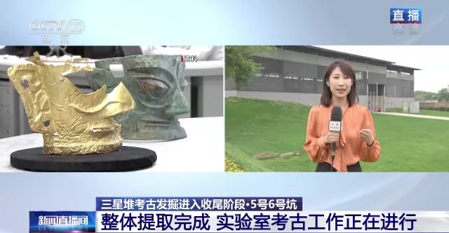 總臺(tái)央視記者 任梅梅:5號(hào)坑和6號(hào)坑都已經(jīng)完成了整體提取工作?!敖鸸忾W閃”的5號(hào)坑,曾經(jīng)發(fā)現(xiàn)了大量金器,比如金面具、鳥形金飾片、有孔的圓形金箔片、斧形金器、小金珠等??紤]到5號(hào)坑里的器物非常細(xì)碎,考古隊(duì)員對(duì)5號(hào)坑進(jìn)行整體打包,目前已經(jīng)整體提取到文保中心,正在開(kāi)展實(shí)驗(yàn)室考古。
