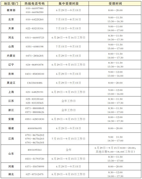 教育部要求各省區(qū)市及所屬高校、中央高校學(xué)生資助管理部門均開通熱線電話,并結(jié)合實(shí)際情況自行確定集中受理時(shí)段和具體受理時(shí)間。