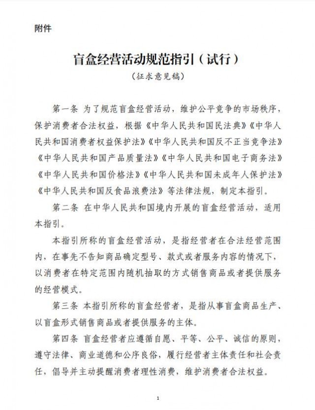 附件:盲盒經(jīng)營活動規(guī)范指引(試行)(征求意見稿)