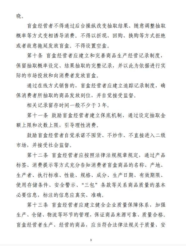 為引導(dǎo)盲盒經(jīng)營者誠信守法經(jīng)營,根據(jù)有關(guān)法律法規(guī),市場監(jiān)管總局起草了《盲盒經(jīng)營活動規(guī)范指引(試行)(征求意見稿)》,現(xiàn)向社會公開征求意見。歡迎社會各界提出意見建議,意見反饋截止日期為2022年8月30日。公眾可通過以下途徑和方式提出意見: