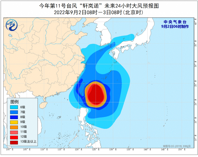 大風(fēng)預(yù)報:9月2日08時至3日08時,巴士海峽、臺灣海峽、臺灣以東洋面、東海大部及釣魚島附近海域、長江口區(qū)、杭州灣,以及臺灣島北部和東部沿海、福建中北部沿海、浙江沿海、上海沿海、江蘇南部沿海將有6-8級大風(fēng),陣風(fēng)9-10級,其中臺灣以東洋面的風(fēng)力有9-12級,陣風(fēng)11-15級,“軒嵐諾”中心經(jīng)過的附近海面的風(fēng)力有13-15級,陣風(fēng)可達(dá)16-17級。