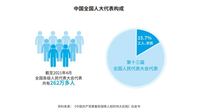 中國從本國國情實(shí)際出發(fā),不斷發(fā)展全過程人民民主,完善人民當(dāng)家作主制度體系,建立了人民代表大會制度、中國共產(chǎn)黨領(lǐng)導(dǎo)的多黨合作和政治協(xié)商制度、民族區(qū)域自治制度和基層群眾自治制度,為人民享有更加廣泛、更加充分、更加全面的民主權(quán)利奠定了堅實(shí)的制度基礎(chǔ)。