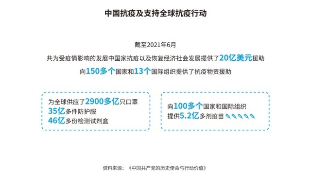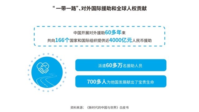 中國先后批準(zhǔn)或加入了30余項(xiàng)國際人權(quán)文書,其中包括6項(xiàng)聯(lián)合國核心人權(quán)條約;累計共向166個國家和國際組織提供了援助,派遣60多萬名援助人員;多次無條件免除重債窮國和最不發(fā)達(dá)國家對華到期政府無息貸款債務(wù)。在聯(lián)合國維和行動中,中國是安理會常任理事國第一大出兵國,30多年來累計派出維和官兵5萬余人次。共建“一帶一路”已成為助力各國發(fā)展、深受世界歡迎的新興國際公共產(chǎn)品,據(jù)世界銀行研究報告,到2030年,將使相關(guān)國家760萬人擺脫極端貧困、3200萬人擺脫中度貧困。新冠肺炎疫情暴發(fā)以來,中國努力促進(jìn)新冠疫苗在全球范圍內(nèi)公平合理分配,成為全球?qū)ν馓峁┮呙鐢?shù)量最多的國家。