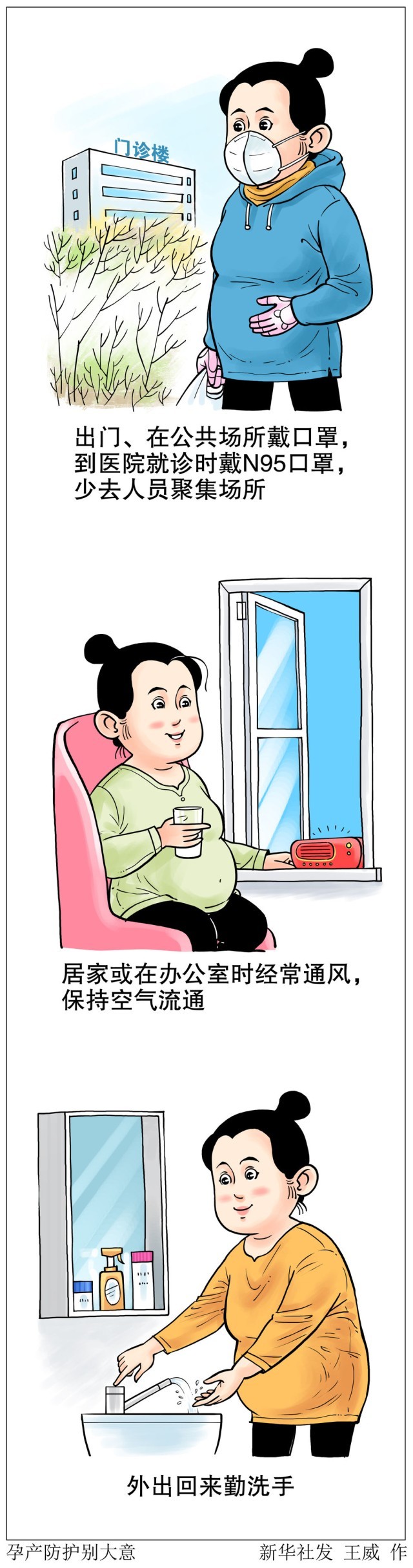 孕產(chǎn)婦需注意防護(hù),做到以下關(guān)鍵點(diǎn):出門、在公共場所戴口罩,到醫(yī)院就診時戴N95口罩,少去人員聚集場所;居家或在辦公室時經(jīng)常通風(fēng),保持空氣流通;外出回來勤洗手。