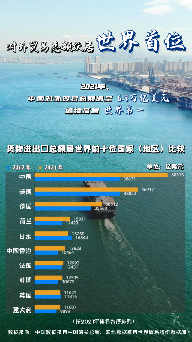 2020年中國(guó)對(duì)外貿(mào)易總額由2012年的4.4萬(wàn)億美元升至5.3萬(wàn)億美元,首超美國(guó)成為全球第一大貿(mào)易國(guó)。2021年,中國(guó)對(duì)外貿(mào)易總額加快上升增至6.9萬(wàn)億美元,繼續(xù)高居世界第一。在經(jīng)濟(jì)全球化頻遭單邊主義、保護(hù)主義等“逆流”襲擾的歷史當(dāng)口,中國(guó)從融入和適應(yīng)全球化走向推動(dòng)和引領(lǐng)全球化,積極倡導(dǎo)建設(shè)開(kāi)放型世界經(jīng)濟(jì),推動(dòng)經(jīng)濟(jì)全球化朝著更加開(kāi)放、包容、普惠、平衡、共贏方向發(fā)展。目前,中國(guó)已成為140多個(gè)國(guó)家和地區(qū)的主要貿(mào)易伙伴,形成更大范圍、更寬領(lǐng)域、更深層次對(duì)外開(kāi)放格局。