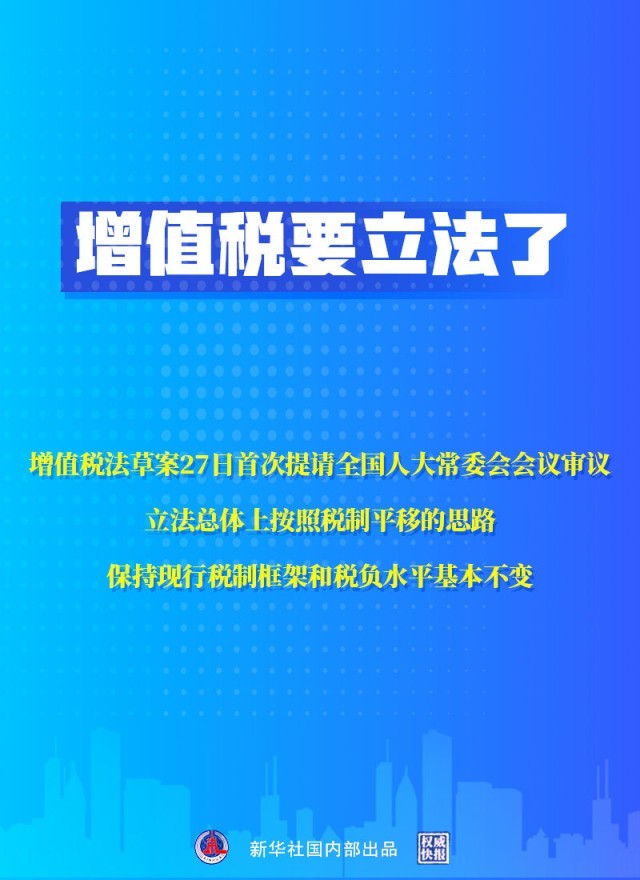 增值稅法草案提請十三屆全國人大常委會第三十八次會議首次審議
