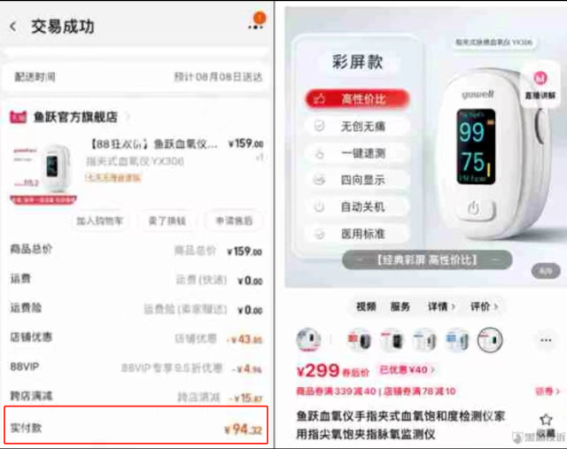 94元購買的血氧儀已漲價至299元(央廣網發(fā))
