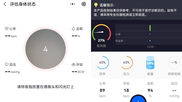沙憲政分析稱,網上類似小程序和手機App是經由手機攝像頭攝像,通過測量人體手指尖或面部動脈血管隨心臟搏動引起充盈的波動和顏色的變化(也就是光譜分析),來檢測心率和血氧飽和度等指標的。