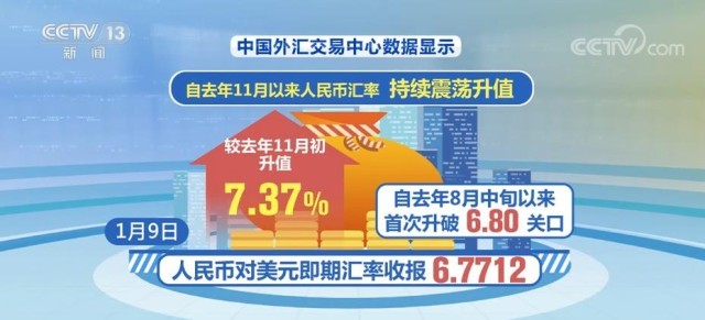 從去年底到今年開年至今,人民幣匯率走出了一波反彈回升行情。中國外匯交易中心數(shù)據(jù)顯示,自去年11月以來人民幣匯率持續(xù)震蕩升值。1月9日人民幣對美元即期匯率收報(bào)6.7712,較去年11月初升值7.37%,也是自去年8月中旬以來首次升破6.80關(guān)口。