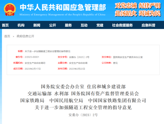 央視網(wǎng)消息:據(jù)應(yīng)急管理部網(wǎng)站消息,國務(wù)院安委會辦公室等八部門發(fā)布關(guān)于進一步加強隧道工程安全管理的指導(dǎo)意見。全文如下: