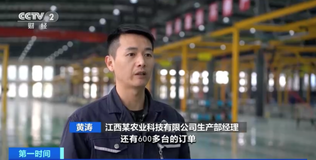 江西某農(nóng)業(yè)科技有限公司生產(chǎn)部經(jīng)理 黃濤:還有600多臺(tái)的訂單,在持續(xù)生產(chǎn)中,我們?nèi)σ愿盀榇焊翰ヌ峁┪镔Y保障。