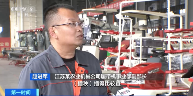 江蘇某農(nóng)業(yè)機(jī)械公司履帶機(jī)事業(yè)部副部長(zhǎng) 趙進(jìn)軍:利用北斗定位技術(shù),插秧插得比較直,誤差比較小,另外它可以節(jié)約一個(gè)人工。