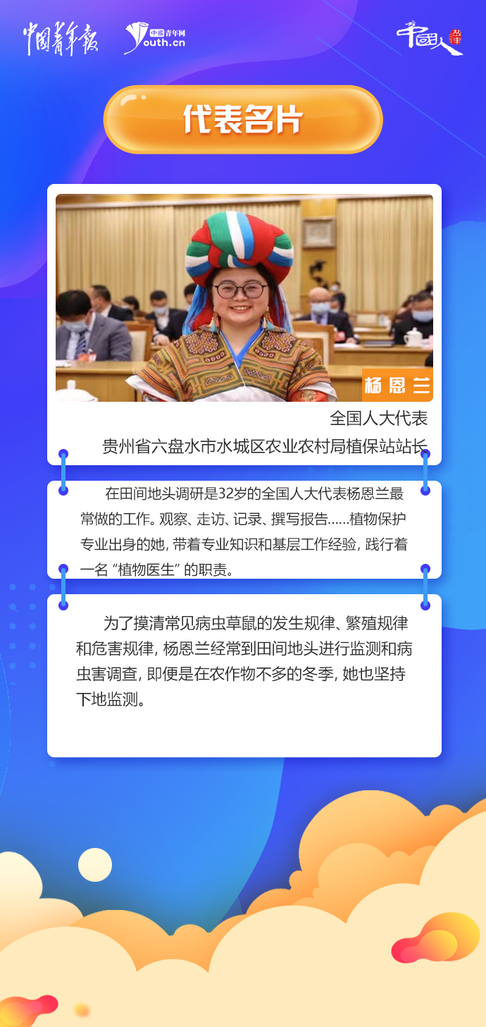 在田間地頭調(diào)研是32歲的全國人大代表?xiàng)疃魈m最常做的工作。觀察、走訪、記錄、撰寫報(bào)告……植物保護(hù)專業(yè)出身的她,帶著專業(yè)知識(shí)和基層工作經(jīng)驗(yàn),踐行著一名“植物醫(yī)生”的職責(zé)。