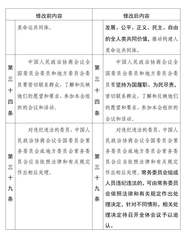 中國(guó)人民政治協(xié)商會(huì)議章程 修改前后內(nèi)容對(duì)照表