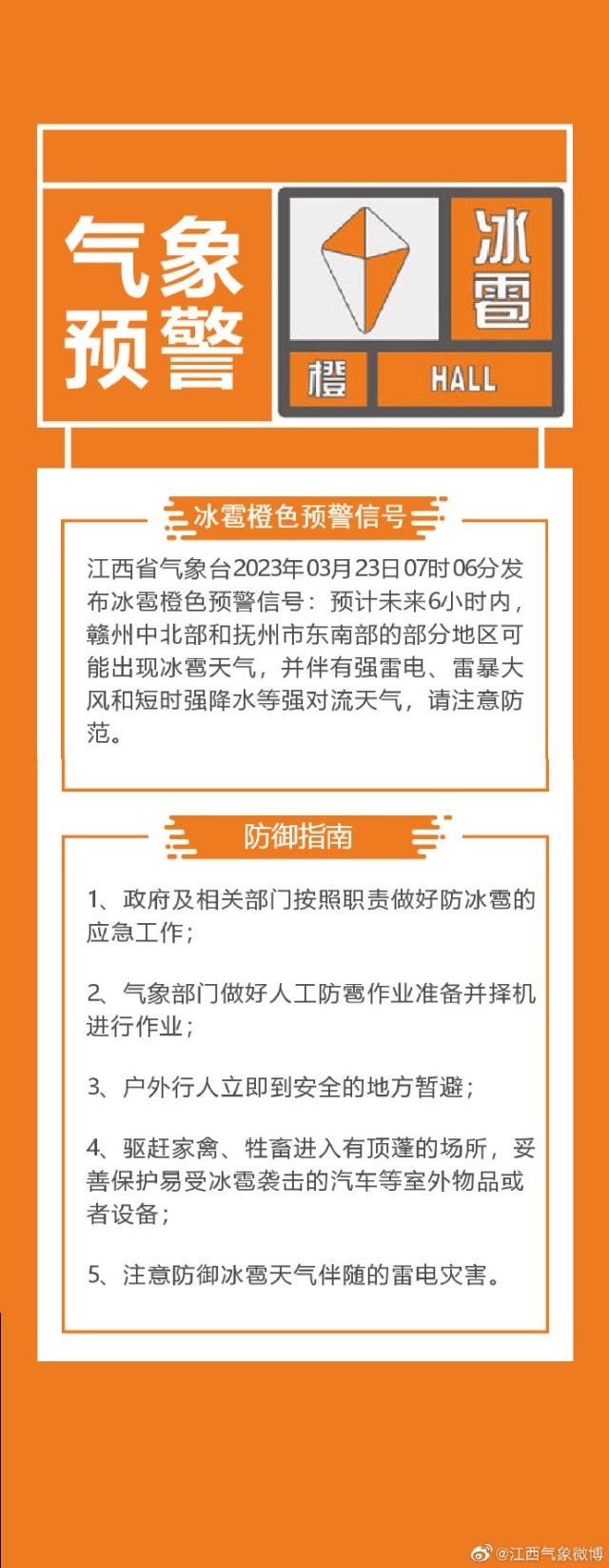 江西省氣象臺發(fā)布冰雹橙色預警