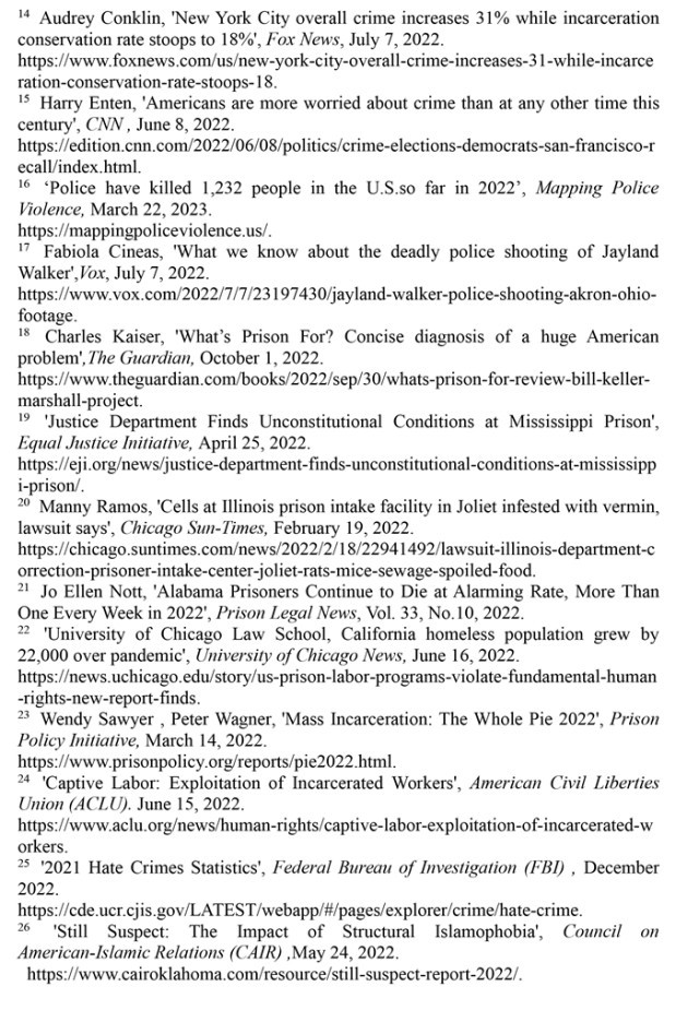 執(zhí)法司法領(lǐng)域種族歧視根深蒂固。聯(lián)合國消除種族歧視委員會的結(jié)論性報告指出,美國執(zhí)法人員對有色人種和少數(shù)族裔群體過度使用暴力并逍遙法外的情況仍然普遍存在;有色人種和少數(shù)族裔在美國司法系統(tǒng)中被逮捕、監(jiān)禁和長期虐待的情況突出。(注73)“警察暴力地圖”網(wǎng)站的數(shù)據(jù)顯示,在2013年至2022年的警察殺人事件中,非洲裔被警察殺害的可能性是白人的2.78倍,手無寸鐵的非洲裔被警察殺害的可能性是手無寸鐵的白人的1.3倍。在波士頓、明尼阿波利斯和芝加哥,非洲裔被警察殺害的可能性更是白人的20多倍。(注74)美國國家公共電臺2022年9月27日報道,國家免責(zé)登記處發(fā)布的報告指出,非洲裔在美國人口中所占比例不到14%,但在美國被誤判犯有嚴(yán)重罪行并在至少服完部分刑期后獲釋的所有人中,非洲裔占了53%;美國非洲裔因三項重大罪行被錯誤定罪的可能性是白人的7倍,非洲裔因毒品犯罪被錯誤定罪的可能性是其他人的19倍。(注75)美國國家學(xué)院出版的《美國監(jiān)禁的增長:探索原因和后果》一書指出,滲透著種族主義的刑事司法系統(tǒng)“正日益成為一個更大的污名化和長期邊緣化系統(tǒng)的主要通道”。(注76)
