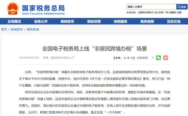 全國電子稅務(wù)局上線“非居民跨境辦稅”場景