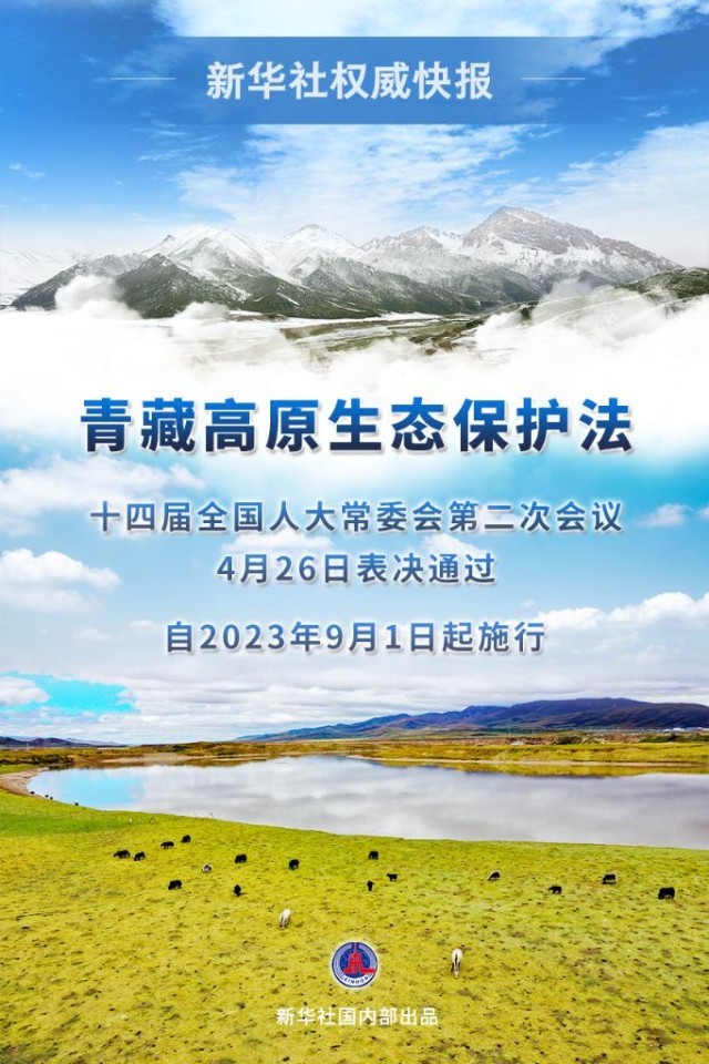 4月26日,十四屆全國人大常委會(huì)第二次會(huì)議表決通過青藏高原生態(tài)保護(hù)法。法律自2023年9月1日起施行。