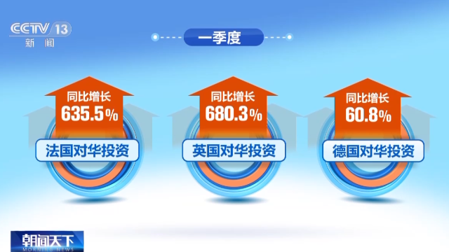 數(shù)據(jù)顯示,一季度,法國、英國、德國對(duì)華投資大幅增長,同比分別增長635.5%、680.3%和60.8%。日本、瑞士、韓國對(duì)華投資也同比分別增長47.7%、47.4%和36.5%,“一帶一路”沿線國家對(duì)華投資同比增長27.8%。