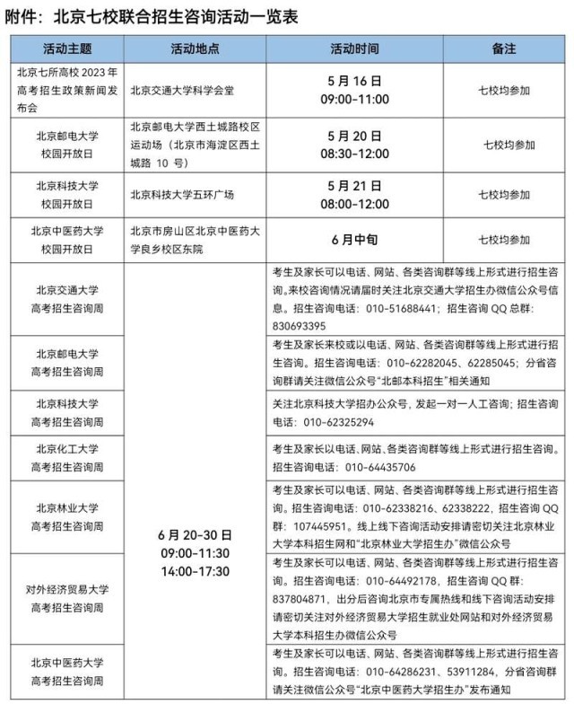 中國青年報(bào)客戶端北京5月16日電(中青報(bào)·中青網(wǎng)記者 葉雨婷 實(shí)習(xí)生 王浩昆)今天,北京交通大學(xué)、北京郵電大學(xué)、北京科技大學(xué)、北京化工大學(xué)、北京林業(yè)大學(xué)、對(duì)外經(jīng)濟(jì)貿(mào)易大學(xué)、北京中醫(yī)藥大學(xué)七所北京高校在北京交通大學(xué)舉辦高考招生政策新聞發(fā)布會(huì),向社會(huì)各界發(fā)布了七校高考招生信息,全面解讀了七校辦學(xué)特色、優(yōu)勢(shì)專業(yè)、招生錄取政策以及招生咨詢活動(dòng)方案等。