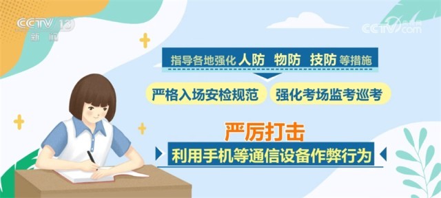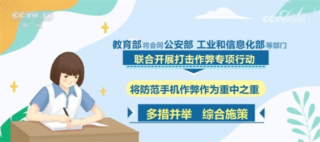 同時(shí),會(huì)同公安部、工業(yè)和信息化部等部門聯(lián)合開展打擊作弊專項(xiàng)行動(dòng),將防范手機(jī)作弊作為重中之重,多措并舉、綜合施策,指導(dǎo)各地強(qiáng)化人防、物防、技防等措施,嚴(yán)格入場(chǎng)安檢規(guī)范,強(qiáng)化考場(chǎng)監(jiān)考巡考,嚴(yán)厲打擊利用手機(jī)等通信設(shè)備作弊行為。對(duì)于在高考中存在作弊行為的考生和人員,將依法依規(guī)嚴(yán)肅處理,堅(jiān)決維護(hù)高考的公平公正。