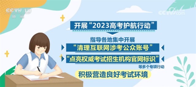 此外,將繼續(xù)開展“2023高考護(hù)航行動(dòng)”,指導(dǎo)各地集中開展“清理互聯(lián)網(wǎng)涉考公眾賬號(hào)”“點(diǎn)亮權(quán)威考試招生機(jī)構(gòu)官網(wǎng)標(biāo)識(shí)”等多個(gè)專項(xiàng)行動(dòng),積極營(yíng)造良好考試環(huán)境。