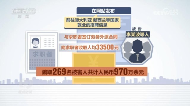 2023年5月,北京市房山區(qū)法院也判決了一起出國(guó)勞務(wù)詐騙案,被告李某波因詐騙罪一審判決13年6個(gè)月有期徒刑。判決書顯示:被告李某波等人冒用北京一家勞務(wù)派遣有限公司名義開展業(yè)務(wù),在網(wǎng)站發(fā)布前往澳大利亞、新西蘭等國(guó)家就業(yè)的招聘信息,與求職者簽訂勞務(wù)外派合同,向求職者收取人均33500元的費(fèi)用,最終騙取269名被害人共計(jì)人民幣970萬(wàn)余元。檢察官還總結(jié)了這類詐騙案的幾個(gè)特點(diǎn)。