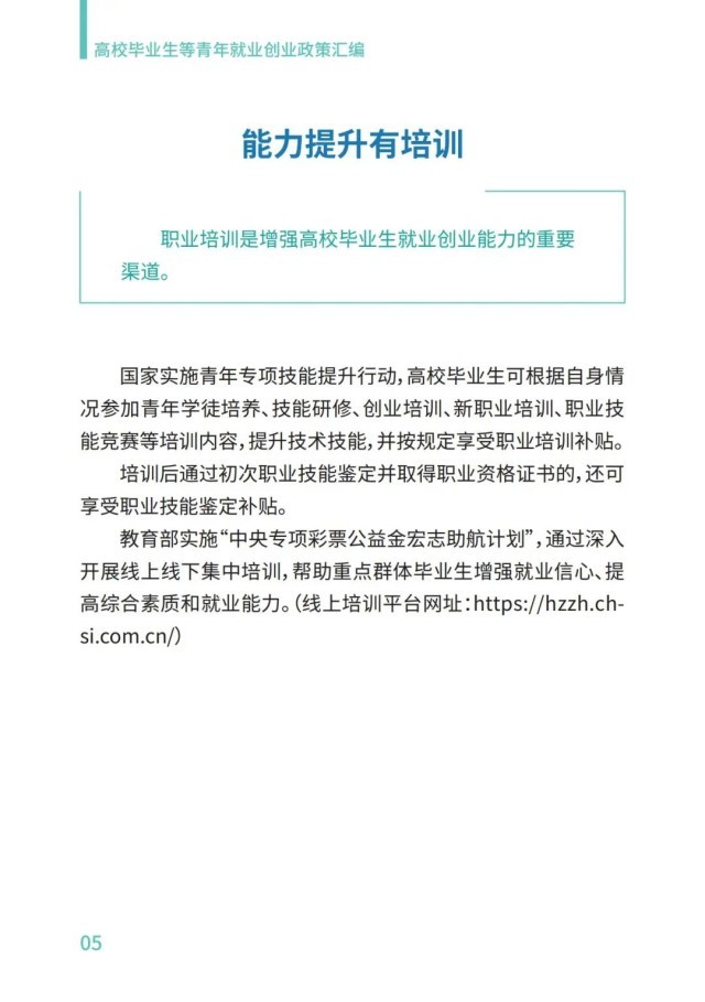 為貫徹落實黨中央、國務院關于高校畢業(yè)生就業(yè)創(chuàng)業(yè)工作的決策部署,教育部高校學生司會同相關部門編印了《高校畢業(yè)生等青年就業(yè)創(chuàng)業(yè)政策匯編》,幫助廣大高校畢業(yè)生和用人單位知曉政策、享受政策,更好助力高校畢業(yè)生就業(yè)創(chuàng)業(yè)。和教育小微一起看——