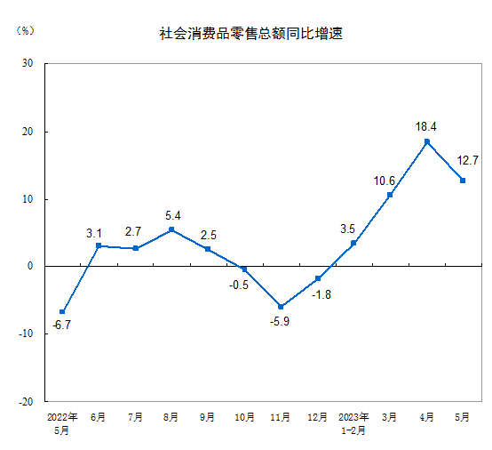 國家統(tǒng)計局:今年5月份社會消費(fèi)品零售總額增長12.7%