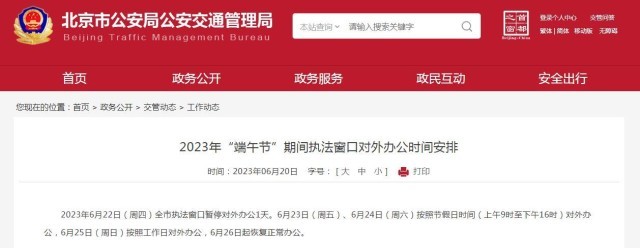 北京市交管局:6月22日全市執(zhí)法窗口暫停對外辦公1天