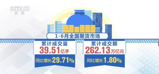 根據(jù)中國期貨業(yè)協(xié)會提供的統(tǒng)計數(shù)據(jù),1—6月全國期貨市場累計成交量為39.51億手,累計成交額為262.13萬億元,同比分別增長29.71%和1.80%。