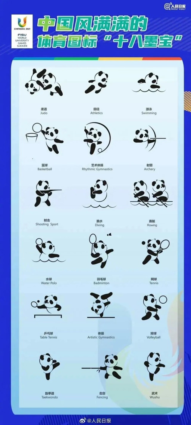 可愛的運動熊貓圖標(biāo)不知道代表哪些競賽項目?