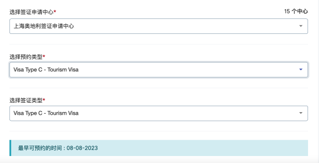 上海奧地利簽證申請中心能預(yù)約到8月上旬送簽,算上7-10個工作日的簽證辦理周期,尚能趕在暑期末尾出行。