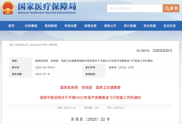 國家醫(yī)保局、財政部、國家衛(wèi)生健康委、國家中醫(yī)藥局14日聯(lián)合印發(fā)《關(guān)于開展2023年醫(yī)療保障基金飛行檢查工作的通知》,將在全國范圍內(nèi)組織開展2023年醫(yī)?;痫w行檢查。