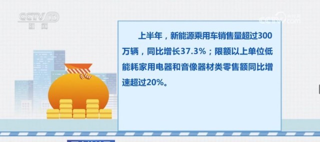 隨著居民消費(fèi)理念轉(zhuǎn)變,促進(jìn)消費(fèi)提質(zhì)升級(jí)政策顯效,消費(fèi)新動(dòng)能持續(xù)增強(qiáng)。上半年,新能源乘用車銷售量超過300萬輛,同比增長(zhǎng)37.3%;限額以上單位低能耗家用電器和音像器材類零售額同比增速超過20%。