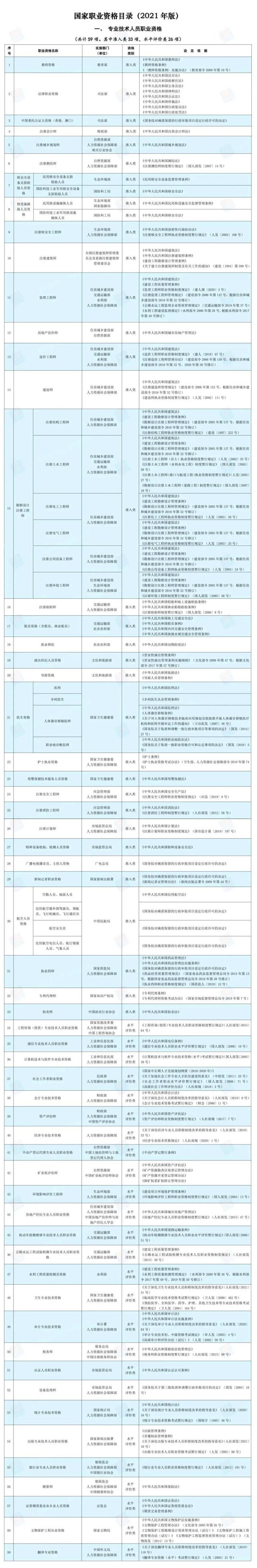 人社部公布的《國(guó)家職業(yè)資格目錄》中