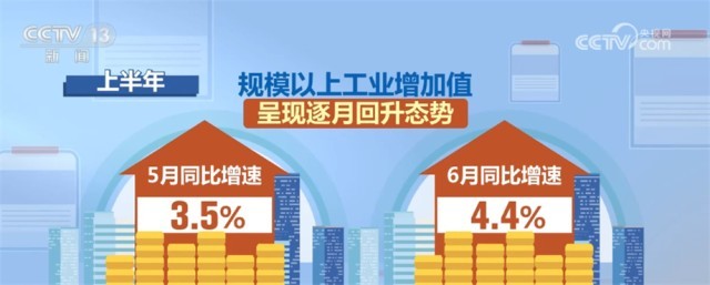 數(shù)據(jù)二:增長3.8%。工業(yè)和信息化部7月19日介紹,隨著3月份以來一批穩(wěn)經(jīng)濟政策效果持續(xù)顯現(xiàn),今年上半年,我國規(guī)模以上工業(yè)增加值同比增長3.8%,工業(yè)經(jīng)濟恢復(fù)向好。其中,5月、6月當(dāng)月同比增速分別為3.5%、4.4%,呈現(xiàn)逐月回升態(tài)勢。工業(yè)投資保持?jǐn)U張,上半年同比增長8.9%,增速較一季度加快0.3個百分點。