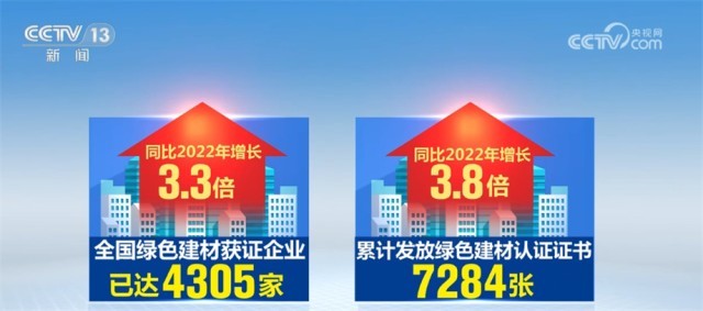 目前,全國綠色建材獲證企業(yè)已達(dá)到4305家,累計發(fā)放綠色建材認(rèn)證證書7284張,同比2022年分別增長3.3和3.8倍。