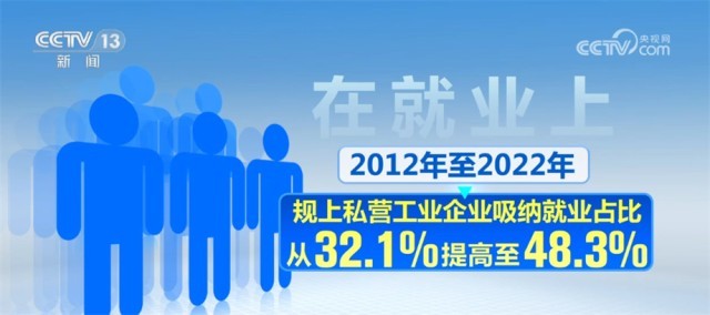 在稅收上,2012年至2021年,民企占比從48%提升至59.6%。在就業(yè)上,2012年至2022年,規(guī)上私營工業(yè)企業(yè)吸納就業(yè)占比從32.1%提高至48.3%。在數(shù)量上,2012年至2022年,民企數(shù)量占比從79.4%增長到93.3%。在外貿(mào)上,民企從2019年起成為第一大外貿(mào)主體,2022年占比達50.9%。