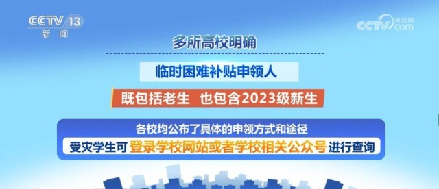 多所高校明確,臨時(shí)困難補(bǔ)貼申領(lǐng)人既包括老生,也包含2023級新生。各校均公布了具體的申領(lǐng)方式和途徑,受災(zāi)學(xué)生可登錄學(xué)校網(wǎng)站或者學(xué)校相關(guān)公眾號(hào)進(jìn)行查詢。其中,南開大學(xué)、北京航空航天大學(xué)等高校公布了資助熱線。上海交通大學(xué)、西北工業(yè)大學(xué)等高校提出,需要幫助的學(xué)生可第一時(shí)間聯(lián)系輔導(dǎo)員。華東師范大學(xué)提出需要幫助的同學(xué)可在學(xué)生資助管理中心網(wǎng)站后臺(tái)申請臨時(shí)性困難補(bǔ)助。