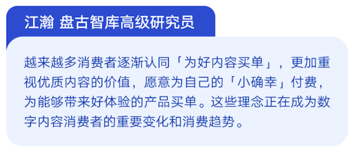 付費(fèi)用戶數(shù)的持續(xù)提升,與版權(quán)環(huán)境向好密切相關(guān)。盤古智庫(kù)高級(jí)研究員江瀚指出,越來(lái)越多的消費(fèi)者逐漸認(rèn)同了為好內(nèi)容買單的思路,也更加重視優(yōu)質(zhì)內(nèi)容的價(jià)值,愿意為自己的“小確幸”付費(fèi),為能夠給自己帶來(lái)好體驗(yàn)的產(chǎn)品買單,這一思路正在成為重要的消費(fèi)趨勢(shì)。對(duì)此,TME在財(cái)報(bào)中也表示,公司在多年的努力過(guò)程中看到,用戶支持正版的意識(shí)越來(lái)越強(qiáng)。