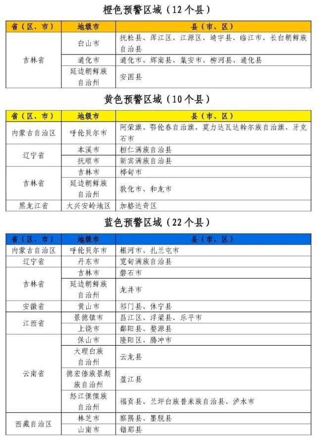 央視網(wǎng)消息:據(jù)“中國(guó)水利”公眾號(hào)消息,水利部和中國(guó)氣象局8月21日18時(shí)聯(lián)合發(fā)布橙色山洪災(zāi)害氣象預(yù)警:預(yù)計(jì),8月21日20時(shí)至8月22日20時(shí),內(nèi)蒙古東北部、遼寧東部、吉林東南部等地部分地區(qū)發(fā)生山洪災(zāi)害可能性較大(黃色預(yù)警),其中,吉林東南部局地發(fā)生山洪災(zāi)害可能性大(橙色預(yù)警),預(yù)警區(qū)域涉及的縣(市、區(qū))見下表。其他地區(qū)也可能因局地短歷時(shí)強(qiáng)降水引發(fā)山洪災(zāi)害,請(qǐng)各地注意做好實(shí)時(shí)監(jiān)測(cè)、防汛預(yù)警和轉(zhuǎn)移避險(xiǎn)等防范工作。
