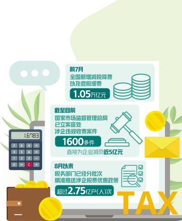 最新數(shù)據(jù)顯示,前7月,全國新增減稅降費(fèi)以及退稅緩費(fèi)1.05萬億元。今年以來,我國聚焦支持做強(qiáng)做優(yōu)實(shí)體經(jīng)濟(jì)、促增收擴(kuò)消費(fèi)、推動高水平科技自立自強(qiáng)、支持戰(zhàn)略性新興產(chǎn)業(yè)發(fā)展等多方面舉措,打出一套稅費(fèi)政策組合拳,實(shí)打?qū)嵵С制髽I(yè)紓困發(fā)展。
