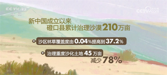 數(shù)據(jù)顯示,新中國(guó)成立以來,磴口縣累計(jì)治理沙漠210萬畝,沙區(qū)林草覆蓋度由0.04%提高到37.2%,治理重度沙化土地45萬畝,減少78%,向黃河年輸沙量減少到370萬噸,降低94.7%,沙漠治理呈現(xiàn)出“整體好轉(zhuǎn)、改善加速”的良好態(tài)勢(shì),也因此形成了防沙治沙“磴口模式”。