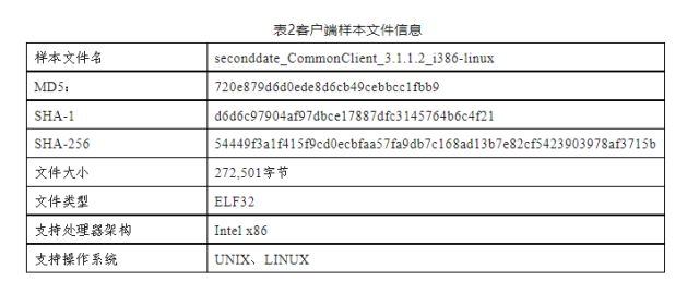 “二次約會(huì)”(SecondDate)間諜軟件支持在Linux、FreeBSD、Solaris、JunOS等各類操作系統(tǒng)上運(yùn)行,同時(shí)兼容i386、x86、x64、SPARC等多種體系架構(gòu),適用范圍較廣。