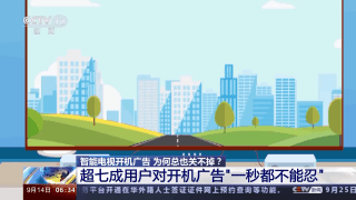 江蘇省消費(fèi)者權(quán)益保護(hù)委員會(huì)副秘書(shū)長(zhǎng) 居上:相較于之前普遍存在的電視開(kāi)機(jī)廣告不能夠關(guān)閉,或者說(shuō)必須到最后幾秒鐘才可以關(guān)閉,應(yīng)該說(shuō)目前已經(jīng)提升了一大步了。