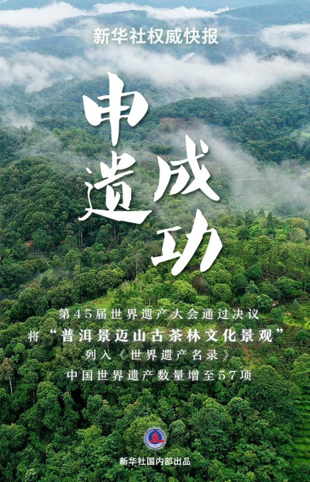 記者9月17日從國(guó)家文物局獲悉,在沙特阿拉伯利雅得舉行的聯(lián)合國(guó)教科文組織第45屆世界遺產(chǎn)大會(huì)通過(guò)決議,將“普洱景邁山古茶林文化景觀”列入《世界遺產(chǎn)名錄》。這是全球首個(gè)茶主題世界文化遺產(chǎn)。